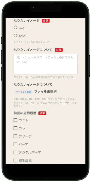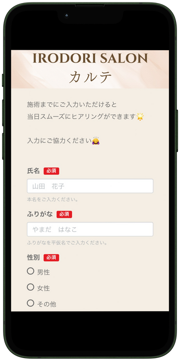 カットなどの施術カルテを