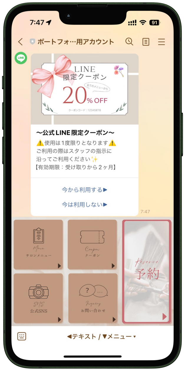 LINE上で予約可能に。