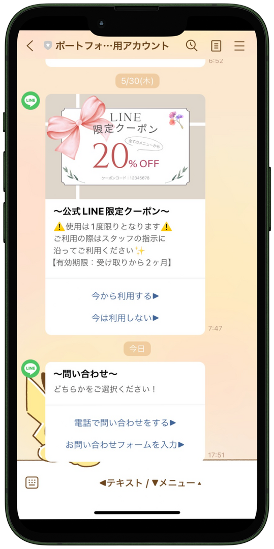 LINE公式アカウントの下部分に